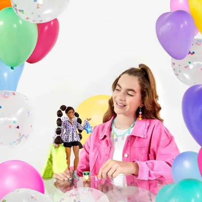 Barbie Extra dolls rock bold fashions and bright colors, and they make big statements! Each Barbie doll has their own unique style that’s playful and over the top. And their pets — each different and all adorable — have tons of personality, too! Barbie Extra lets kids explore self-expression through style and offers an exciting fashion and styling play experience with posable dolls. They are all about having fun with fashion with glitter, gummy bears, emojis and stand-out hair — bringing EXTRA vibes wherever they go. Each sold separately, subject to availability. Dolls cannot stand alone. Colors and decorations may vary.