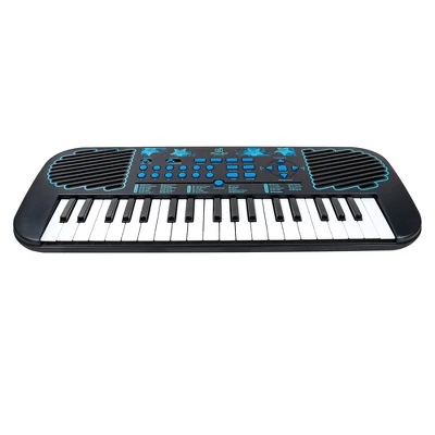 Develop your child’s love for music with the First Act Keyboard! This fun keyboard with electric blue detailing has 37 keys, each delivering an authentic, classic sound! This child’s keyboard includes 100 sounds, 100 rhythms, and 10 songs, letting your child create real and unique music! The First Act Keyboard is easy to use and ready to play right out of the box. This aspirational instrument can help your child develop a deep appreciation for music while also developing auditory and hand-eye coordination skills! So start their love for music and creation today with the First Act Keyboard!