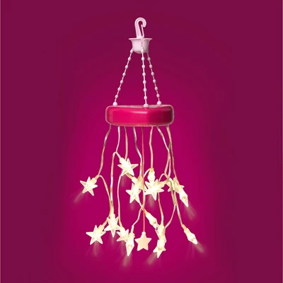 Enjoy sweet dreams with the Our Generation Suite Tent, a delightful accessory for kids to share with their 18-inch dolls. Whether you’re telling funny stories or sharing secrets under the starlight, the Suite Tent is the perfect place to have all kinds of adventures. This easy-to-assemble fabric tent is approximately 47.5″ (L) x 47.5″ (W) x 59″ (H), the perfect size to share with a doll friend (or two)! This pretty pink and white tent is ideal for an indoor camping trip, a sleepover, or other fun adventures. Just tie back the tent’s entrance with the bright pink bows to welcome visitors and let your journeys begin! During nighttime, your dreams will be even sweeter with the gorgeous glow of the starlight chandelier. Hang it up inside the tent on the loop, turn it on, and let starlight, star bright wish you a good night. It also makes a wonderful night light for those times when a little bit of extra starlight helps you sleep tight. Dolls sold separately.