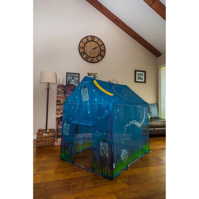 As the day fades away, the fireflies will play! There’s nothing quite as magical as watching your little one’s eyes shine bright as they gaze upon the twinkling night sky through our No-See-Um mesh with a full graphic print. Featuring G3 color coated super poles and safe radius-cut hook and loop fasteners, our 100% polyester mesh Glow N’ The Dark Firefly House Tent offers the perfect vantage point for your child to explore the nighttime in a comfortable and stimulating environment. The moon, fireflies, and lights are all glow-in-the-dark, making this 50″ x 40″ x 50″ tent a must for any mini stargazer!
