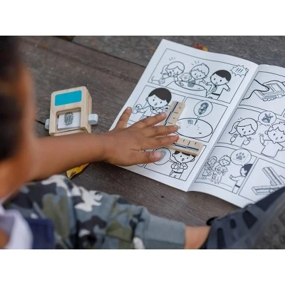 Role play as a secret agent with the fully equipped PlanToys Secret Agent Play Set. The playset includes an ID badge, finger scanner, walkie-talkie handset, L-shaped scale and coloring comic. Children can bring this set with them wherever they go, as it comes with a utility belt that can keep all gadgets safe inside! Free copies of the coloring comic is available to download online. Made with sustainable materials in Thailand.